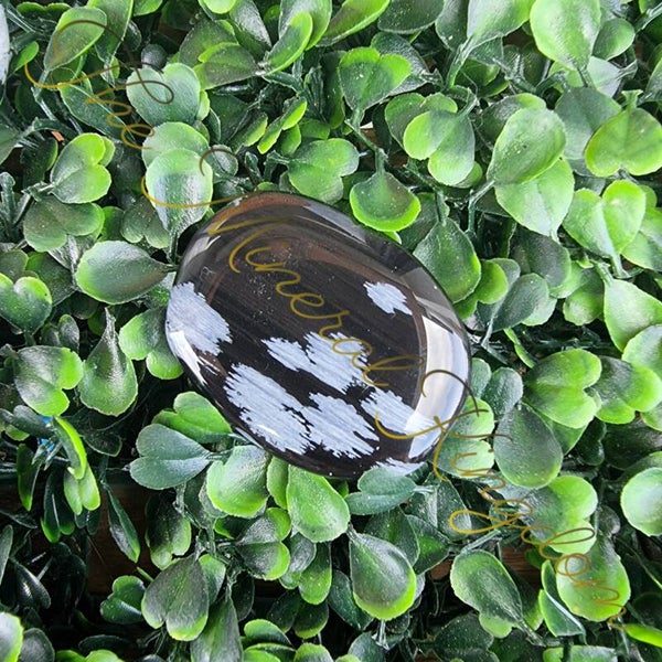 L'obsidienne neige ou flocon de neige ou mouchetée, ou étoilée contient des inclusions blanches/grisates que l'on appelle 'sphérulite', elle est principalement composée de dyoxide de silicium et sa dureté est entre 5 et 5.5 sur l'échelle de Mohs